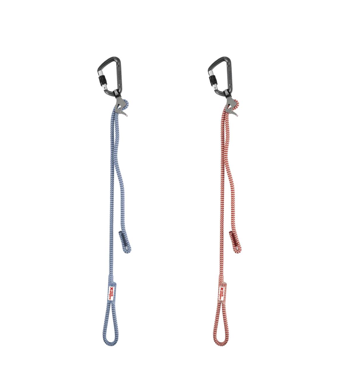 El componente metálico está hecho de acero inoxidable. Su diseño es único. Se conecta al punto de amarre del arnés con el lazo. Una vez conectado, simplemente tire del extremo libre del cordón para tirar hacia el ancla o libere la tensión manteniendo el dispositivo abierto con la palanca del pulgar.
