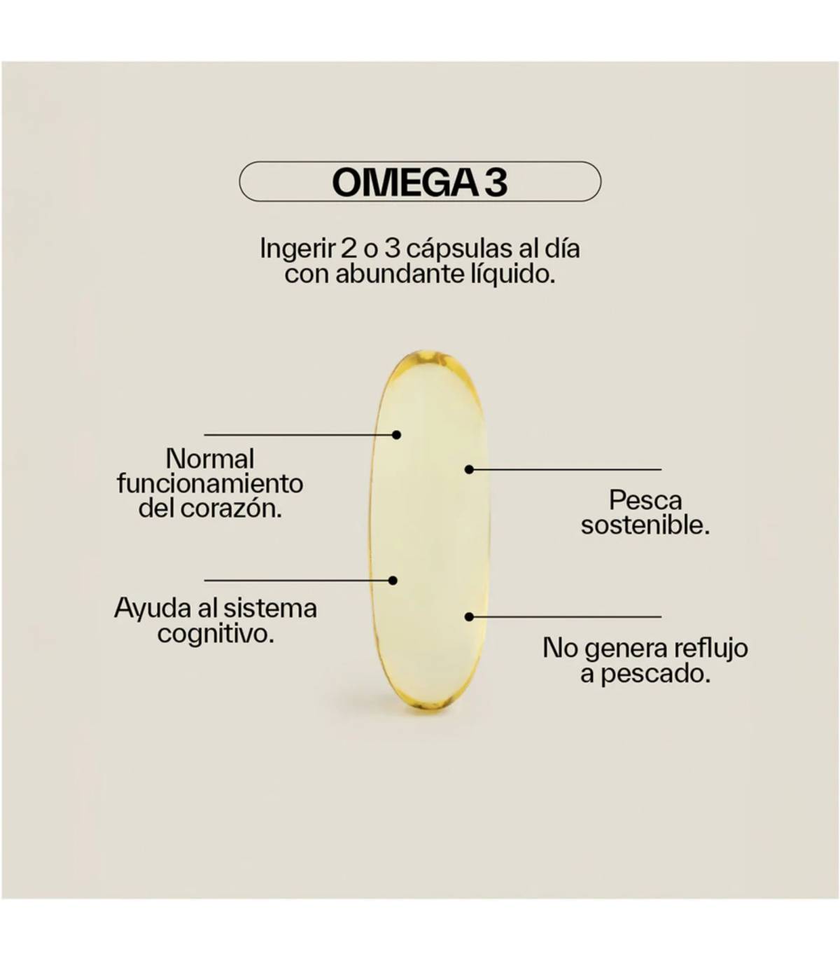 - Sostenibilidad: Producto formulado con aceite de pescado proveniente de fuentes sostenibles, respetando el ecosistema marino y los estándares internacionales de calidad.