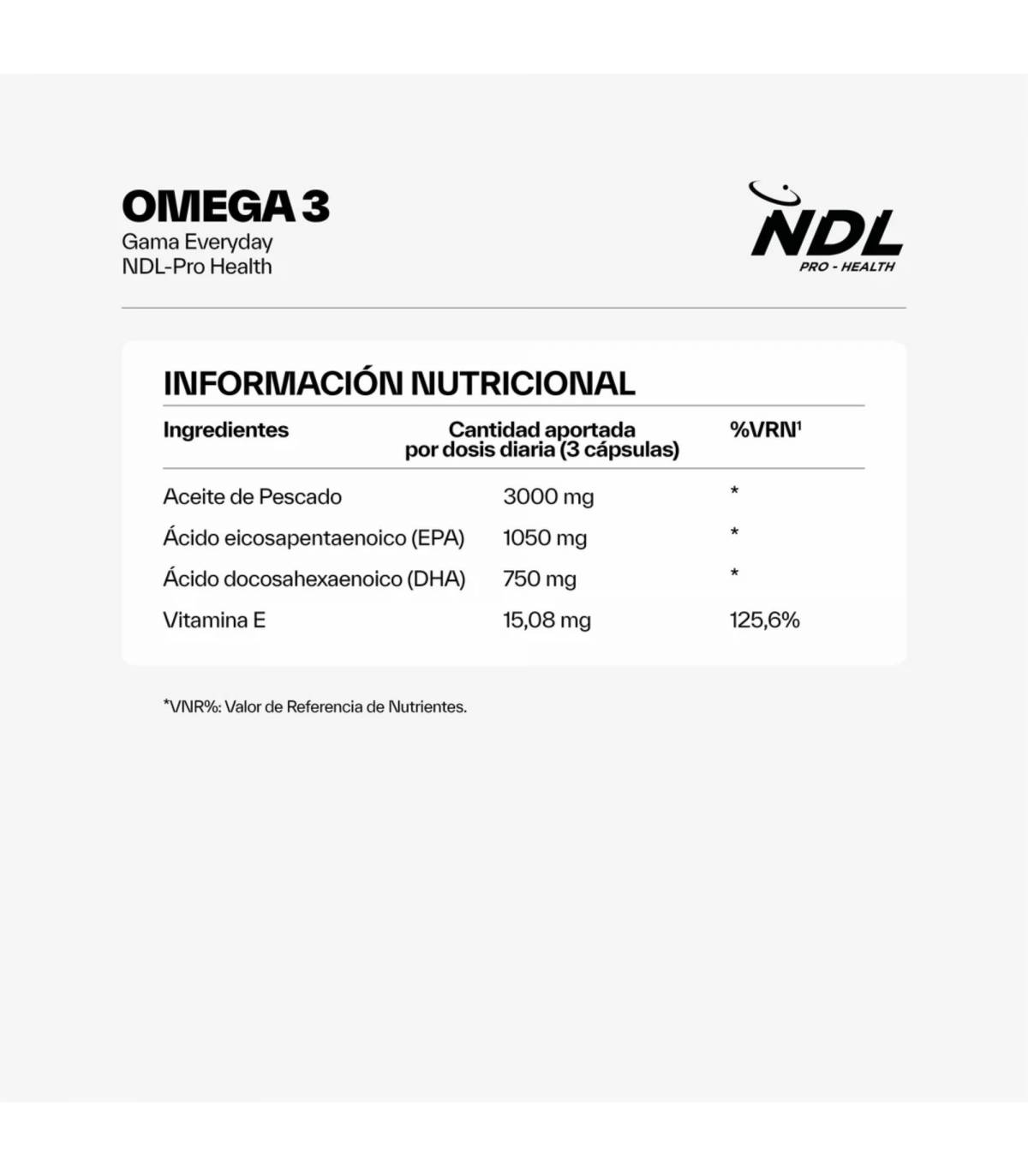 Omega 3 NDL, Omega 3 con vitamina E, NDL Pro-Health Omega-3, suplementos omega 3, cápsulas de omega 3, aceite de pescado puro, omega 3 EPA DHA, omega 3 alta concentración, omega 3 antioxidante, omega 3 antiinflamatorio natural, omega 3 para el corazón, omega 3 para el cerebro, omega 3 para la visión, omega 3 sostenible, omega 3 sin reflujo, omega 3 sin sabor a pescado, omega 3 premium, omega 3 con vitamina E natural, suplemento cardiovascular, omega 3 salud mental, omega 3 alta pureza, complementos alimenticios NDL.