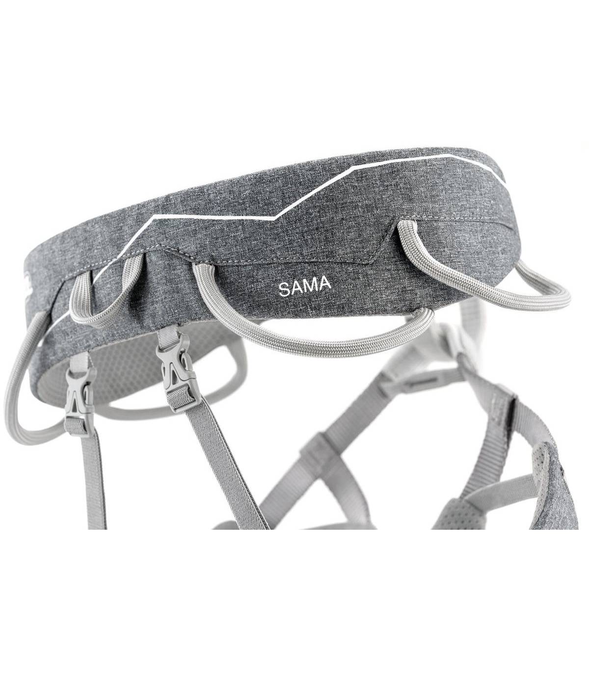 Petzl Sama es un arnés de escalada diseñado para ofrecer confort y libertad de movimiento, ideal tanto para escalada deportiva en rocódromo y pared como para rutas de varios largos