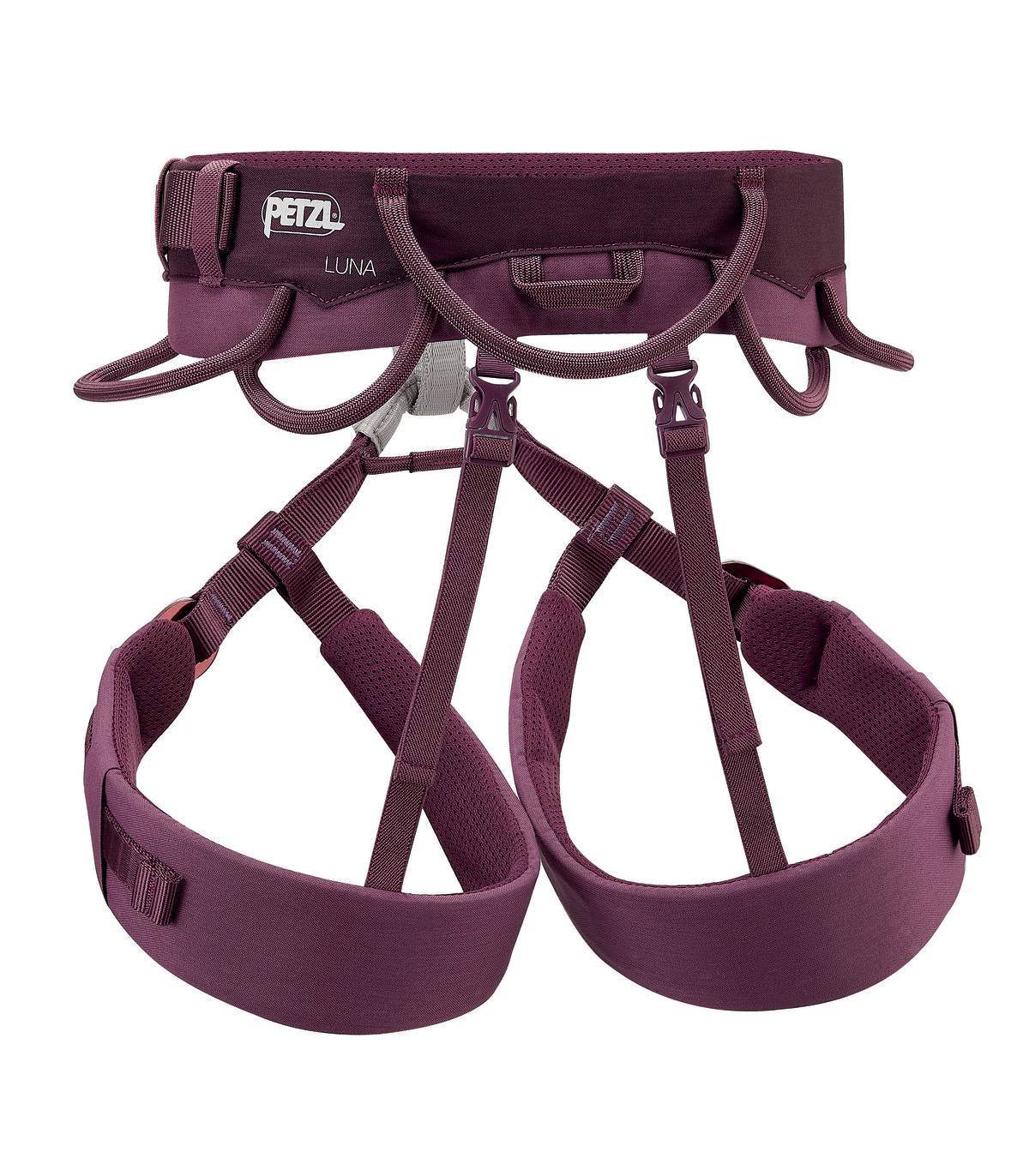 Las perneras ajustables del Arnes Luna Petzl para mujerr, lo hacen idóneo para alpinismo y escalada en hielo, diseñado con tecnología EndoFrame que proporciona un excelente reparto de la carga entre la cintura y los muslos para asegurar un confort máximo.
