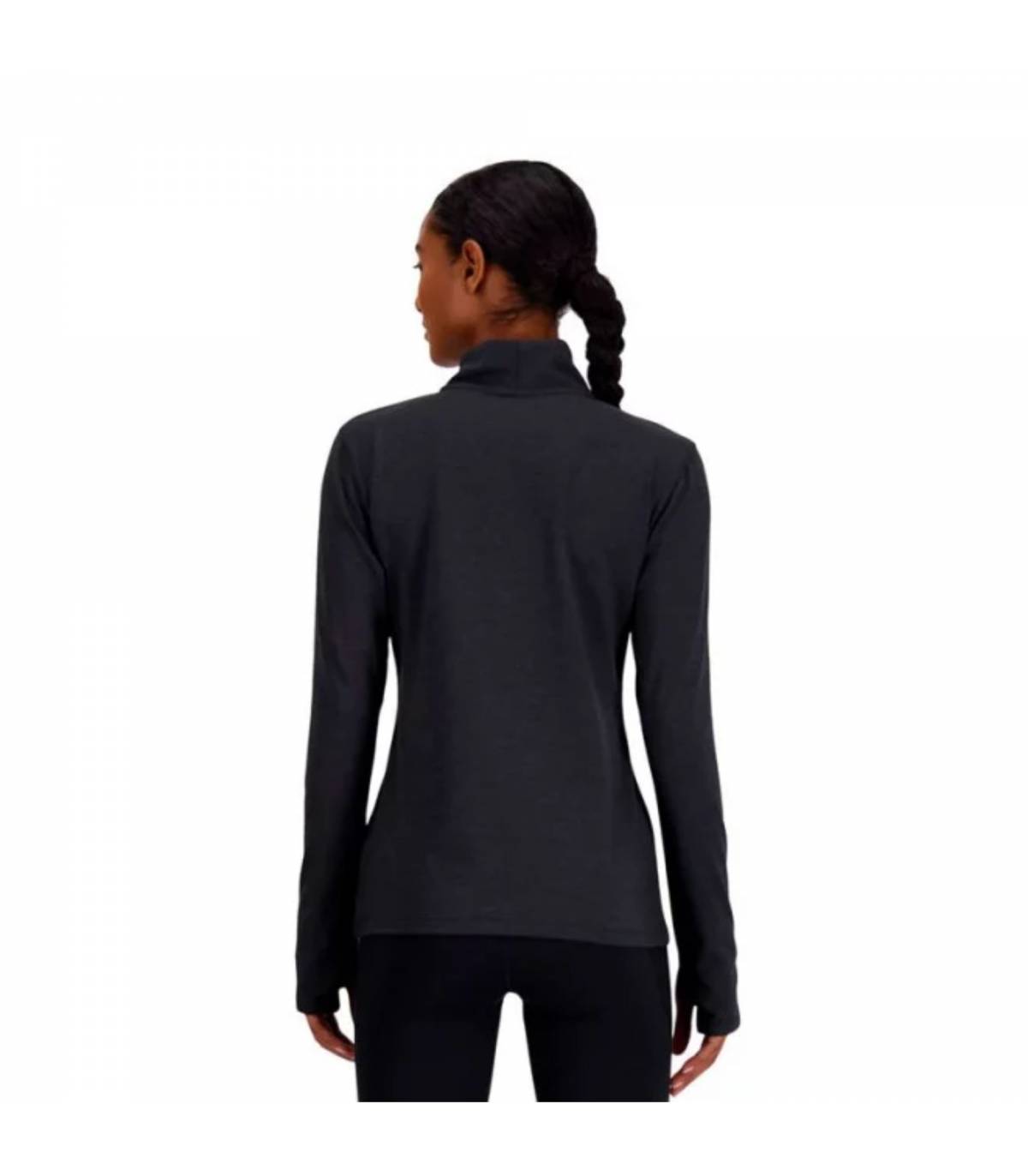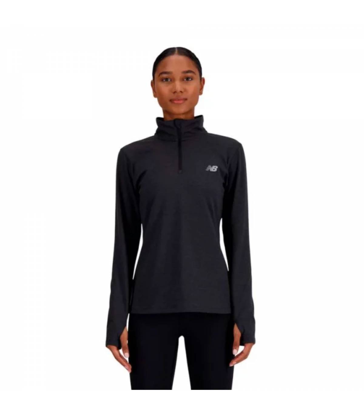 Equipada con la tecnología NB DRY de secado rápido, esta camiseta absorbe la humedad y la expulsa al exterior, manteniéndote seca incluso en entrenamientos intensos. Su cremallera de un cuarto aporta practicidad y ventilación adicional, mientras que las mangas largas con orificio para el pulgar aseguran mayor cobertura y estabilidad durante el movimiento. El logo NB reflectante añade un toque de seguridad y visibilidad en condiciones de poca luz.