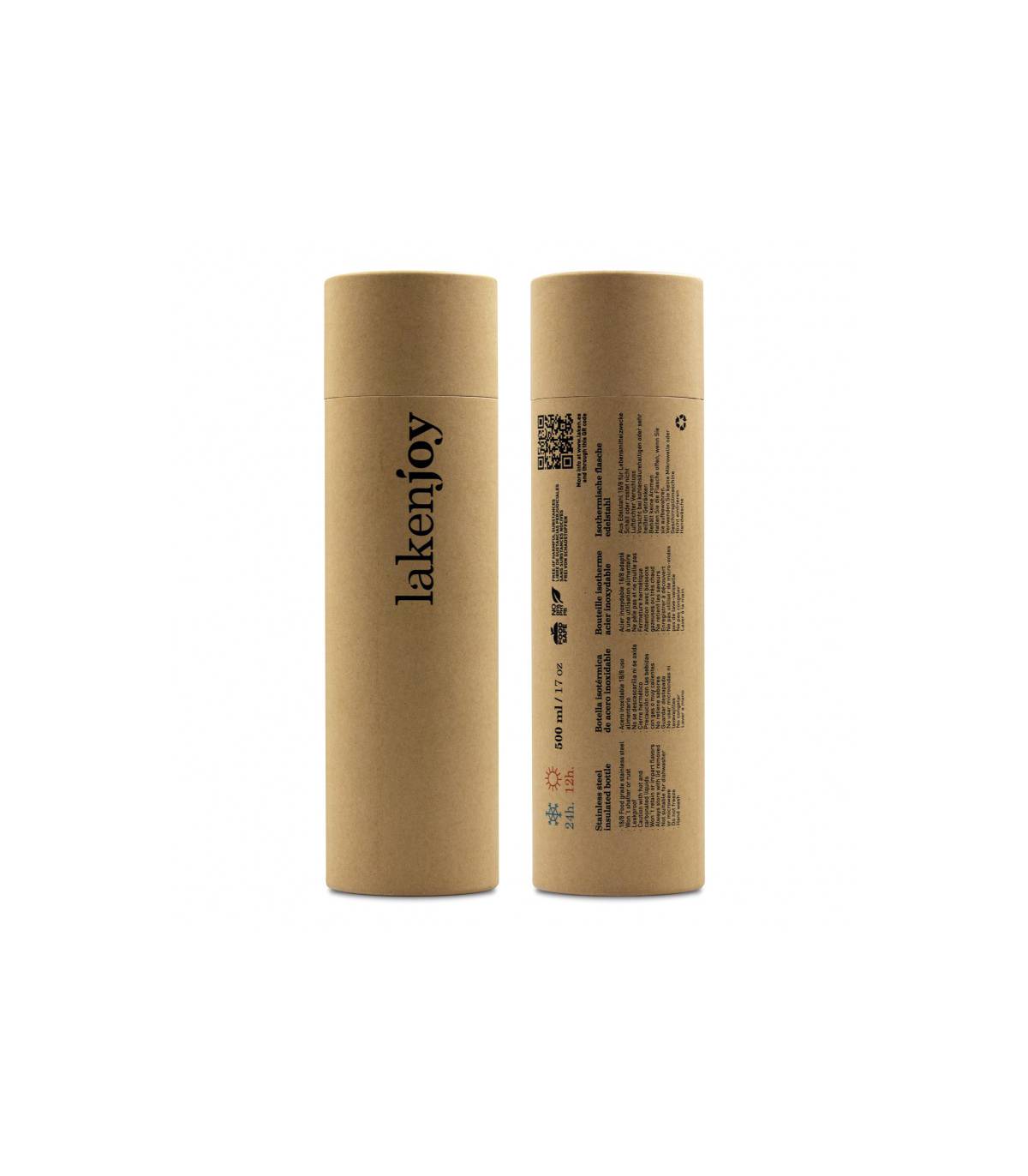 LakenJoy es la novedad más versátil de nuestro catálogo. Una botella que podrás utilizar en cualquier circunstancia, tanto para ir a la oficina como para practicar senderismo, ir de camping o para practicar cualquier deporte. Mantente hidratado eligiendo un diseño elegante, práctico y genuino para tu botella térmica de 500ml de acero inoxidable 18/8. Ofrece un rendimiento térmico de hasta 8 horas para el calor y hasta 24 horas para bebidas frías y por supuesto es completamente hermética.