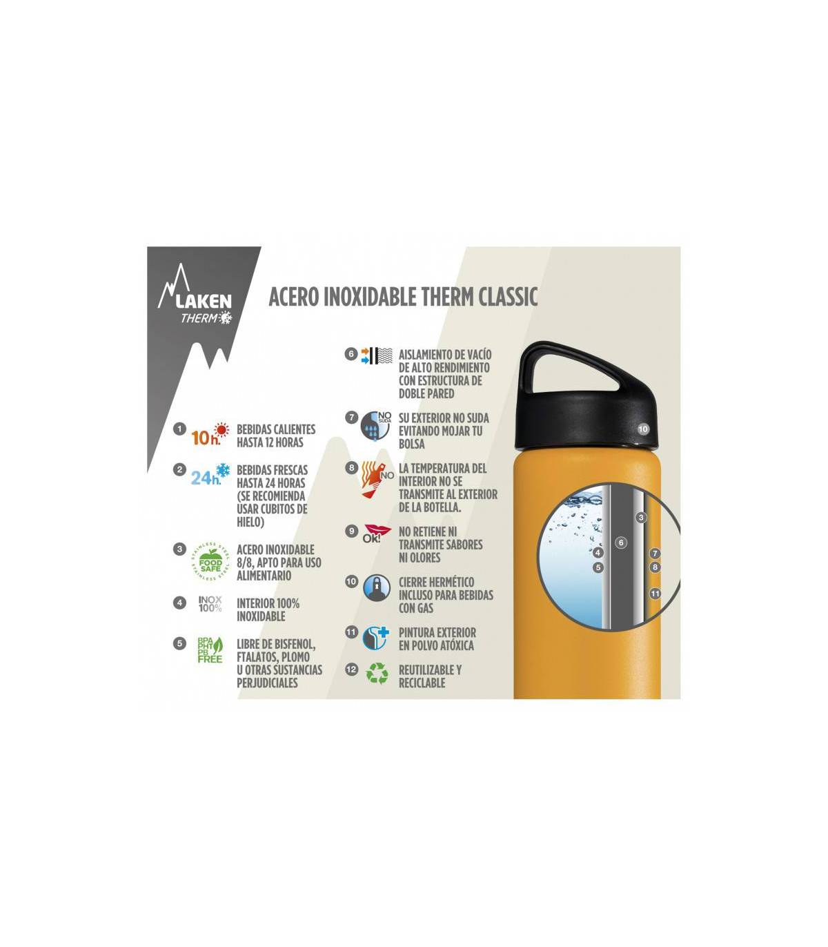 El Thermo Flask con asa y vaso Laken es la elección ideal para quienes buscan mantener sus bebidas frías o calientes durante horas, sin renunciar a la comodidad ni a la calidad.