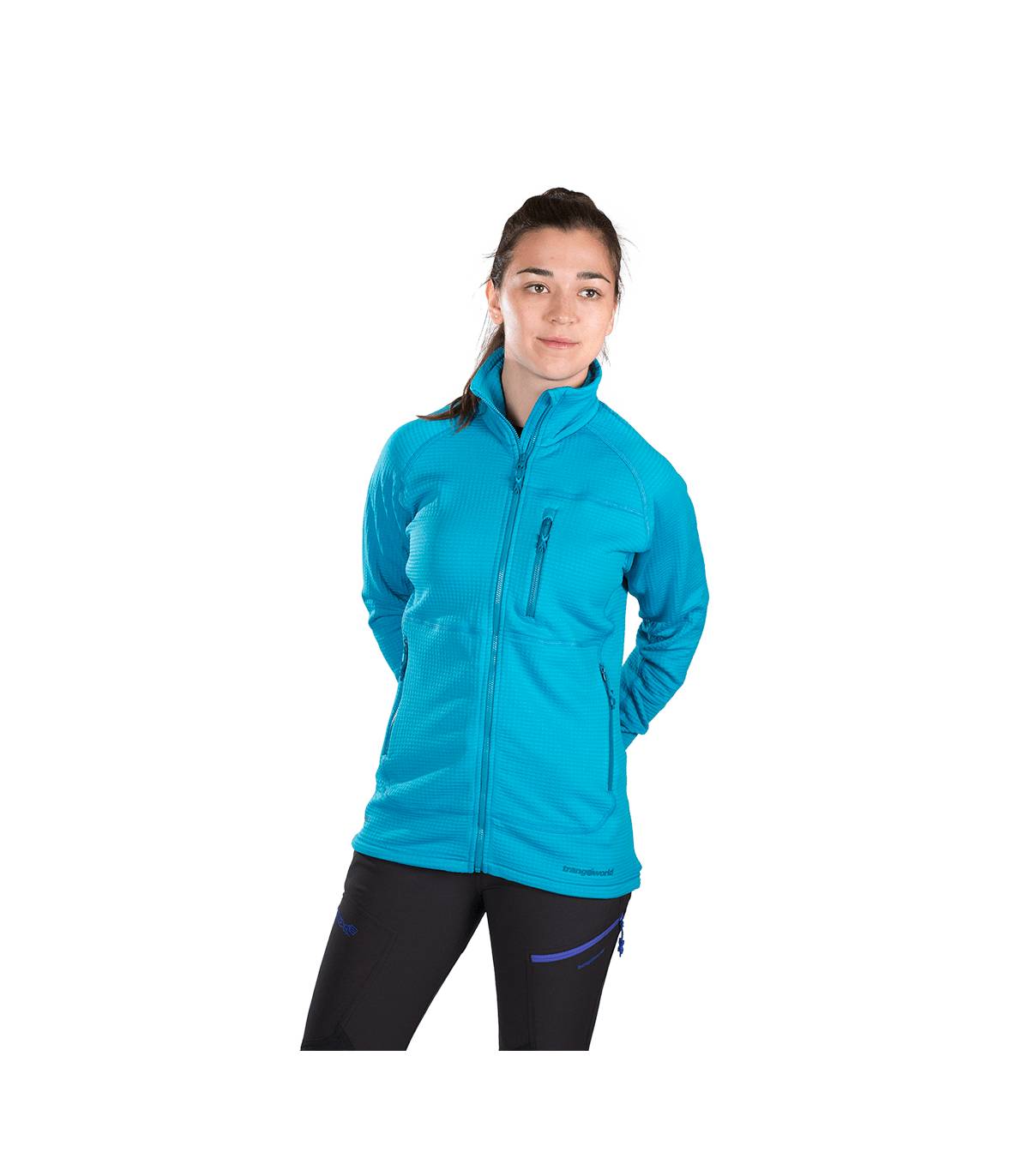 La Chaqueta Trangoworld Liena V02 es una sudadera técnica para mujer confeccionada en tejido de poliéster elástico que ofrece comodidad, libertad de movimiento y un diseño versátil