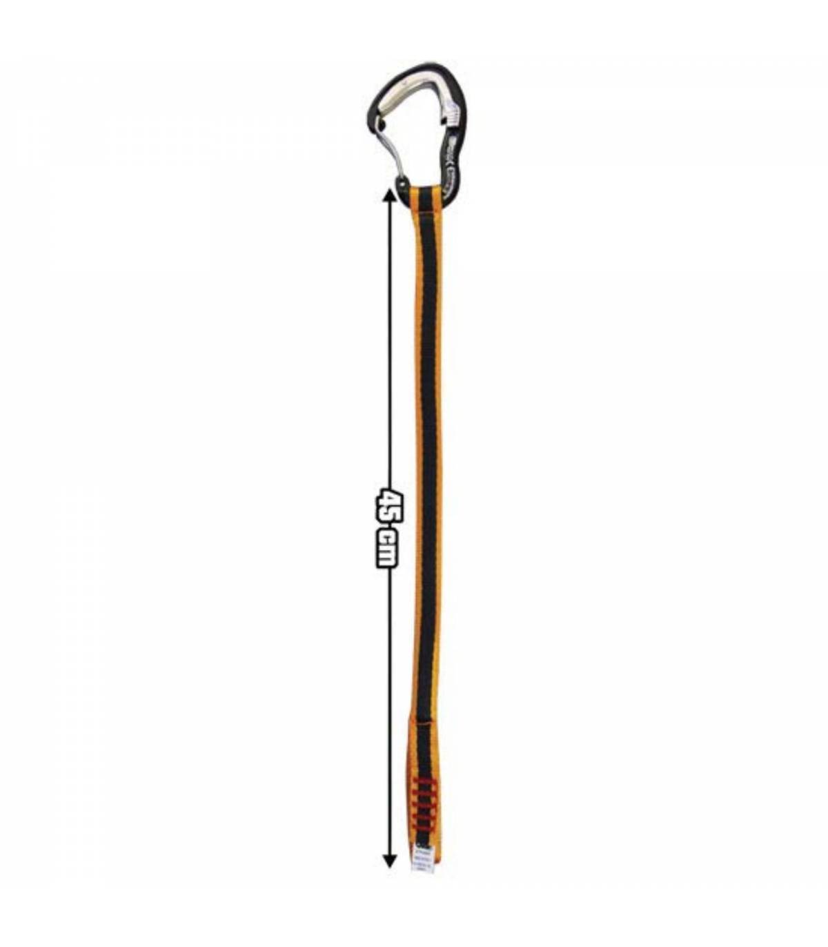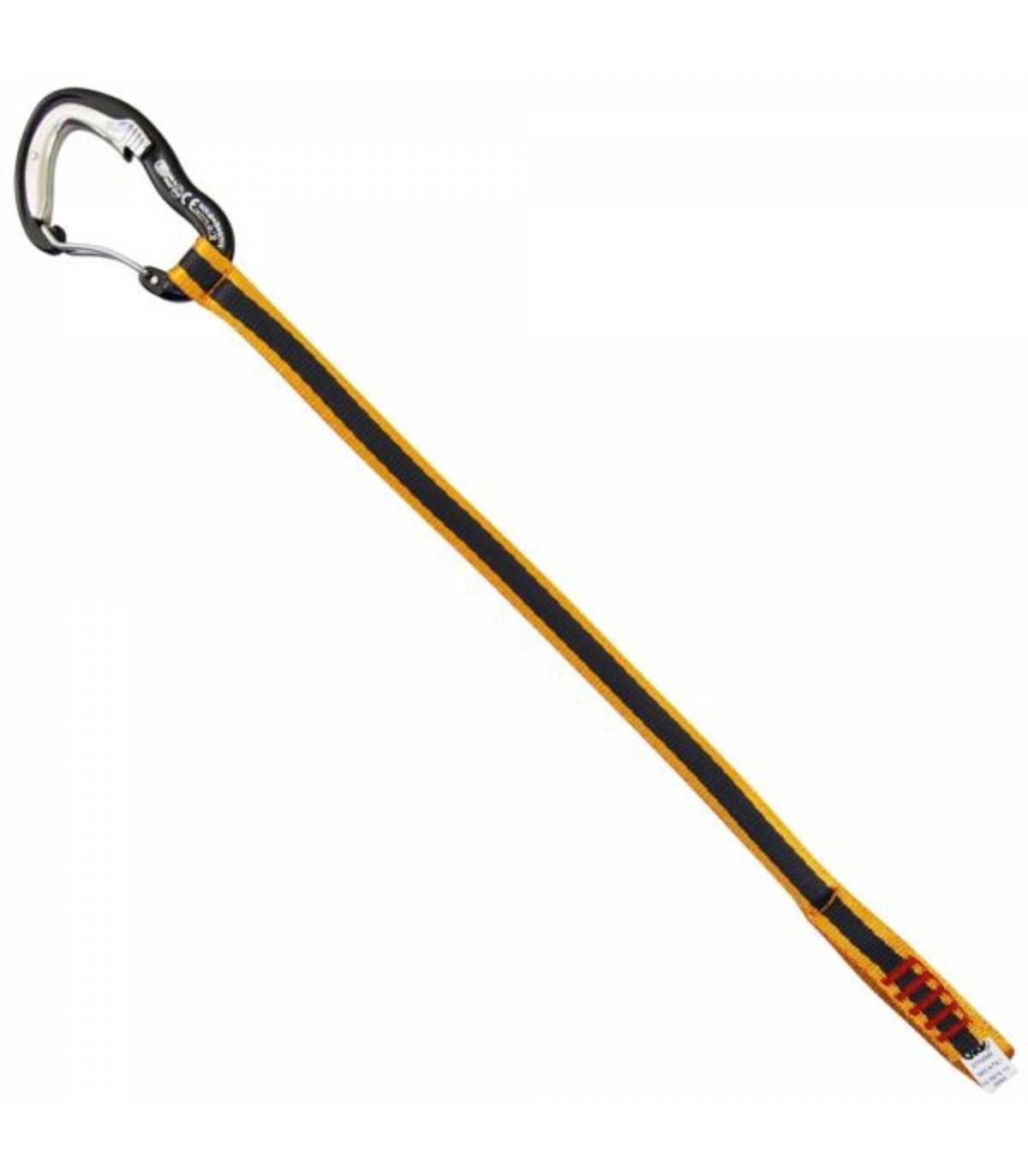El Panic! XL se compone de una cinta tubular semirrígida de 45 cm, reforzada internamente por una varilla de aluminio flexible, lo que le da consistencia direccional. Esta rigidez permite orientar el extremo del conjunto hacia el seguro sin necesidad de que el escalador tenga que alcanzarlo físicamente, ideal para situaciones donde el chapaje representa un verdadero reto o un riesgo real.