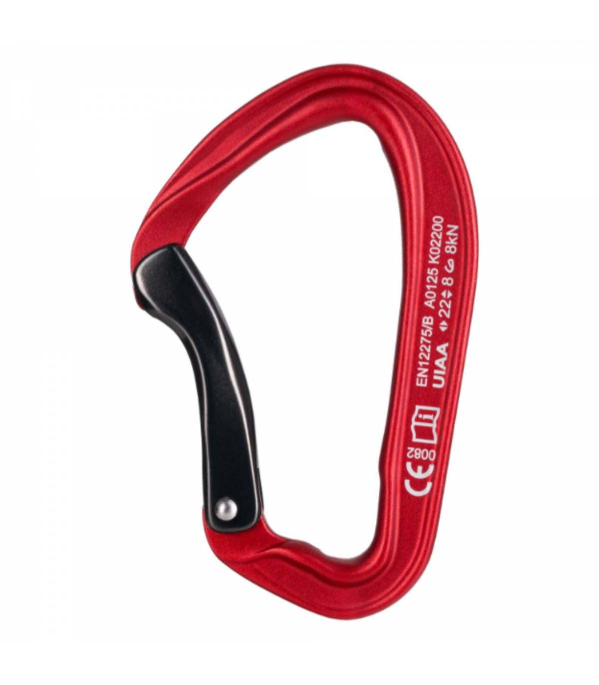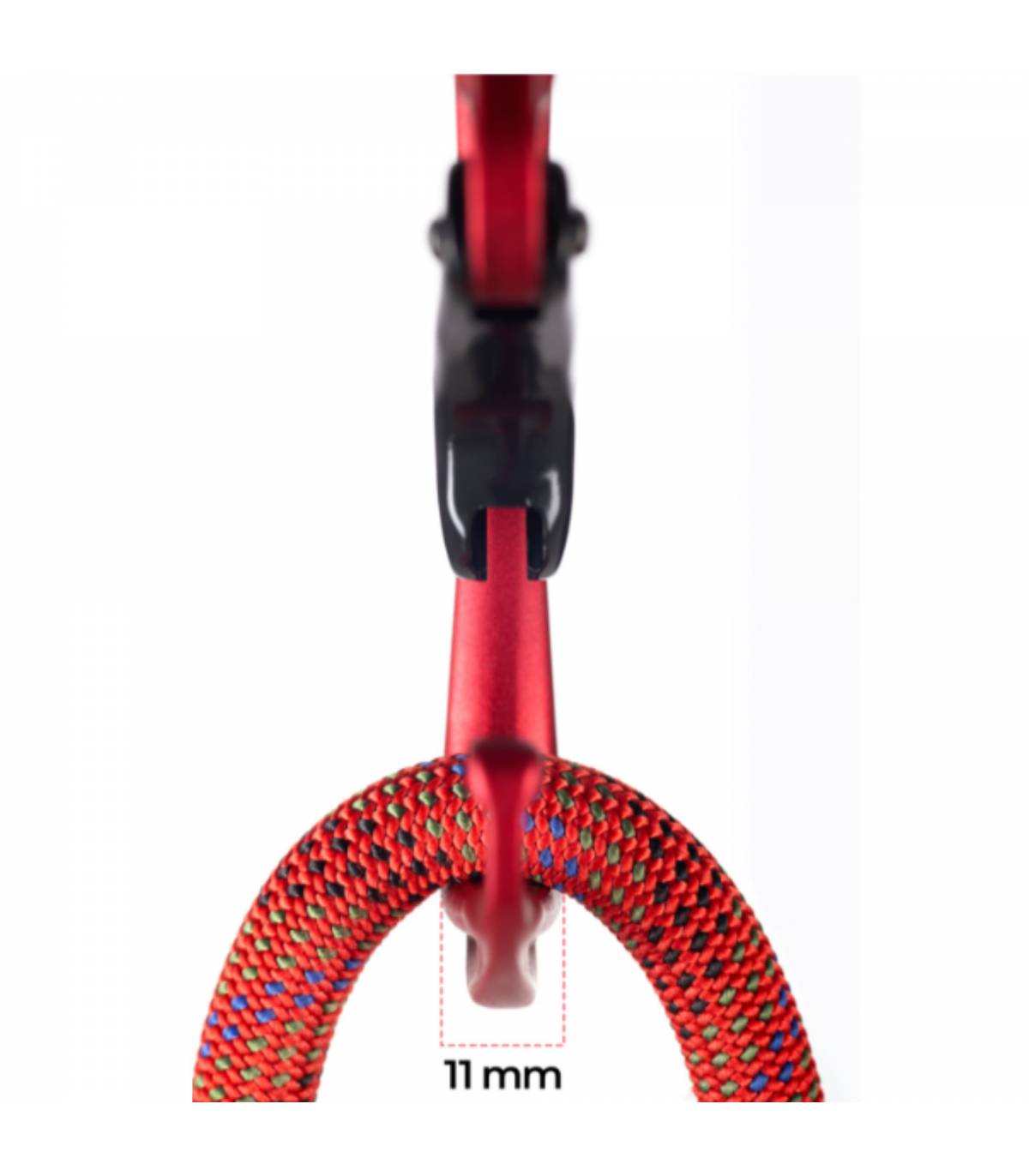 Fabricado mediante forjado en caliente, este mosquetón ofrece una estructura compacta y resistente, con zonas estratégicamente reforzadas y una amplia área de contacto de 11 mm que reduce la fricción, alargando la vida útil de la cuerda y del propio mosquetón. Su gatillo curvo, de apertura excepcional (28 mm), garantiza un manejo rápido y seguro, incluso en los movimientos más técnicos.