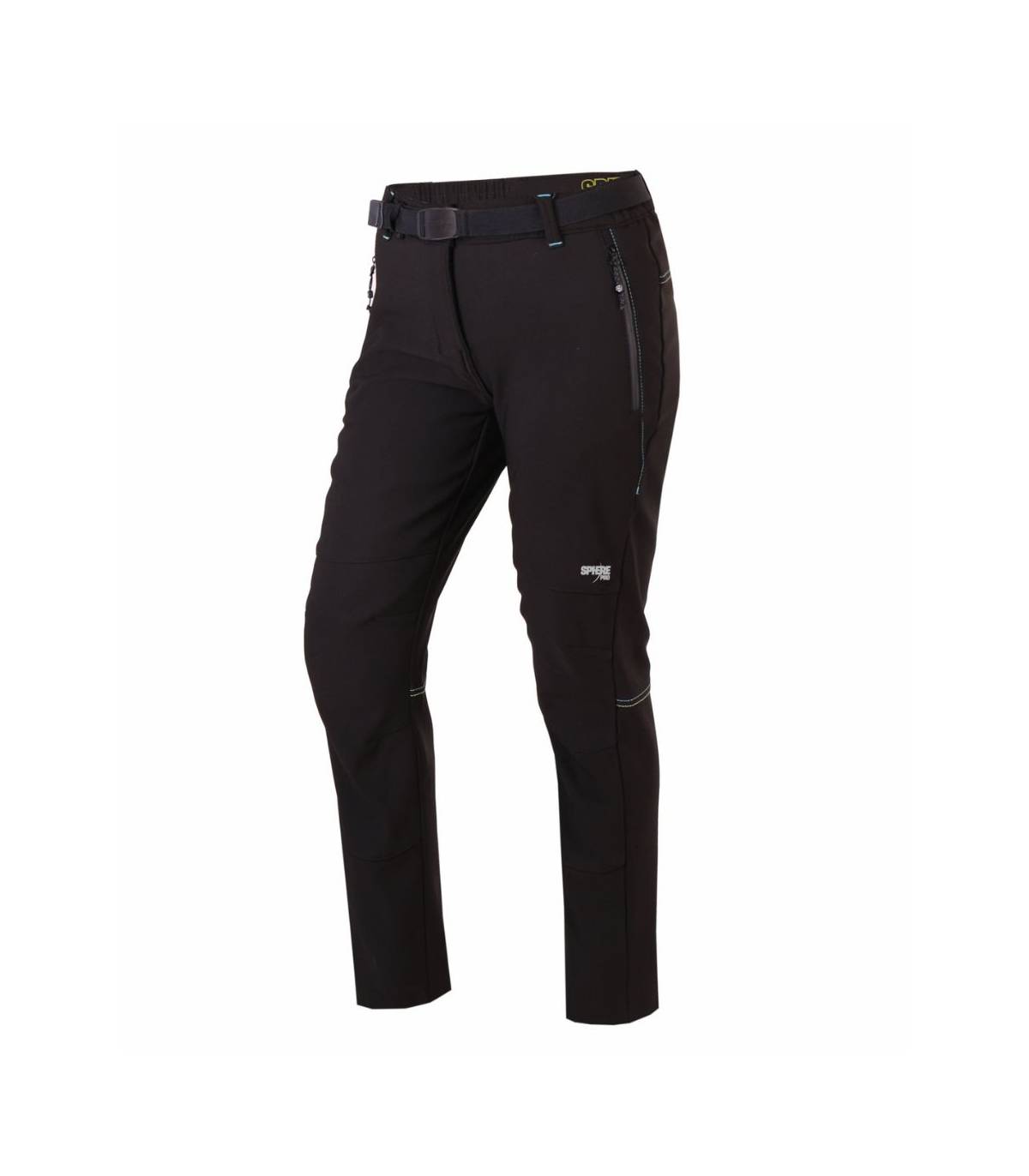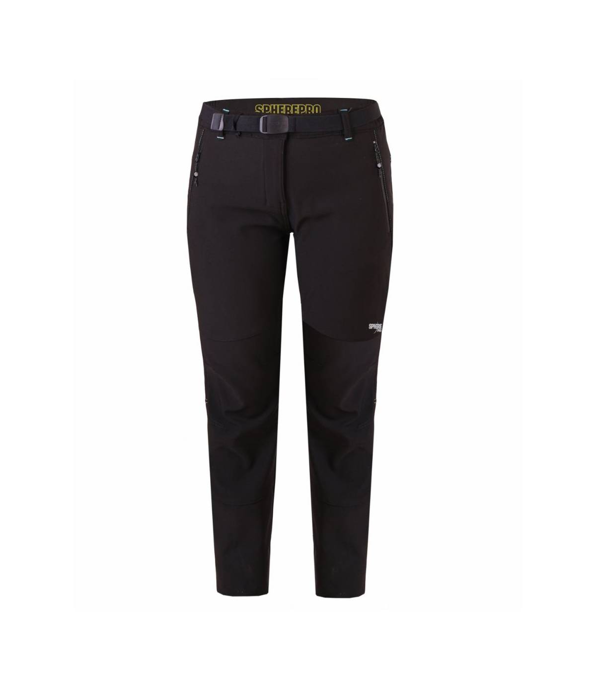 Pantalon Alda Sphere mujer Corte técnico, cintura semi elástica con cierre de botón corchete y cinturón elástico ajustable, dos bolsillos delanteros con cremallera invertidas y forro a contraste de color, pinzas en zona de rodillas, goma ajustable en los bajos, logo reflectante, repuntes y refuerzos a contraste de color.