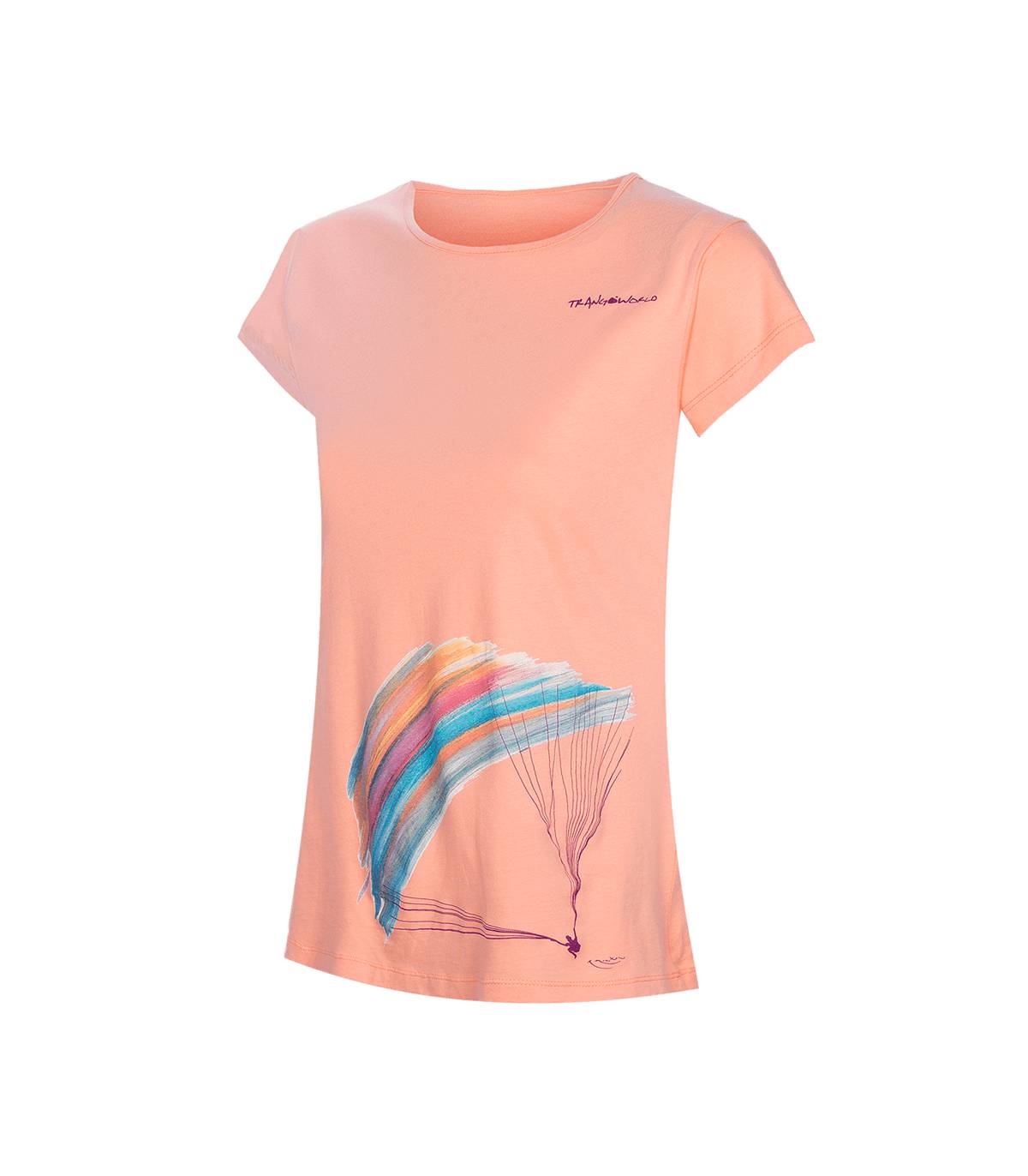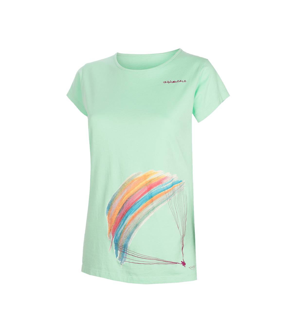 Trangoworld Camiseta Parapente WM Camiseta de manga corta en algodón orgánico de mujer. Diseño de una acuarela de Ricardo Montoro inspirada en el parapente.