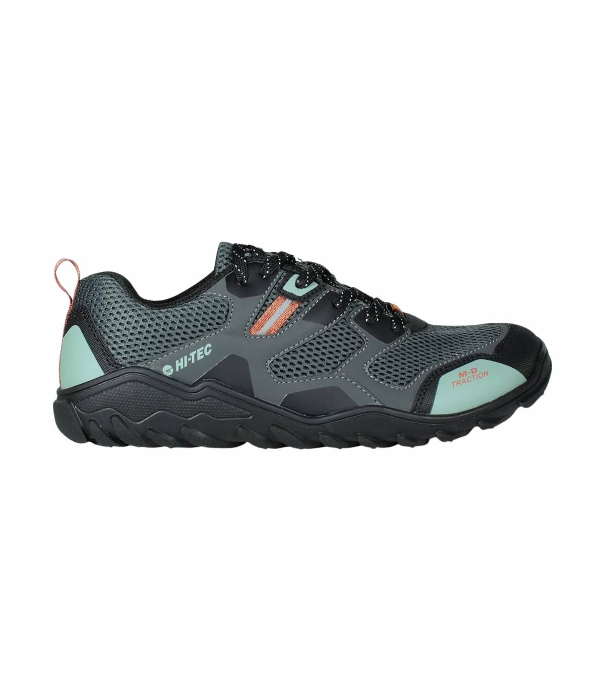 La Hi-Tec Páramo Hombre SS26 monta una suela de caucho orientada a dar tracción en superficies variadas. Algunas fichas mencionan específicamente tecnología M-D Traction y otras hablan de tacos multidireccionales, siempre dentro de una propuesta flexible y de perfil zero drop. Traducido al uso real: suficiente agarre para senderos sencillos, caminos y terreno irregular moderado, sin perder la movilidad que busca una zapatilla barefoot.