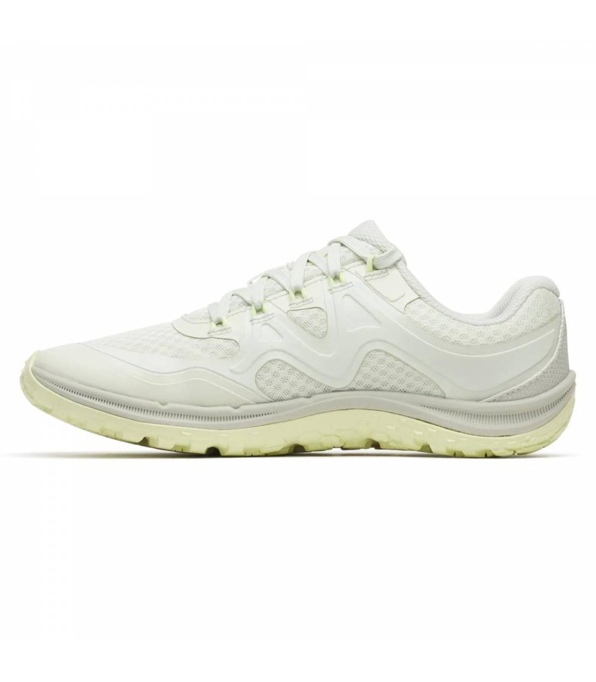 La mediasuela utiliza espuma FloatPro, que Merrell describe como ligera, con buen retorno de energía y comodidad duradera. Aun así, conviene entender bien qué tipo de sensación ofrece este modelo: no esperes una amortiguación blanda ni una protección propia de una zapatilla maximalista. Aquí la idea es mantener una plataforma muy contenida para favorecer una transición natural y una pisada más cercana al suelo. El drop 0 mm refuerza todavía más ese enfoque, así que es una opción muy interesante para quienes ya están adaptadas al calzado minimalista o quieren una zapatilla de transición muy orientada a técnica y propiocepción.